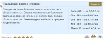 The suitable length of the bracelet depends on its weight and the girth of the wrist. On the right are the weights of the bracelet and the length ranges by which it should be larger than the girth of the wrist. - More than 80 g - by 5.0-6.6 cm