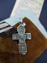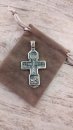 Изображено на кресте: Распятие Христово с предстоящими. Святая Троица. Архангел Михаил. Святые Воины. Тихвинская икона Божией Матери. Православный крест.Высота: 8 мм